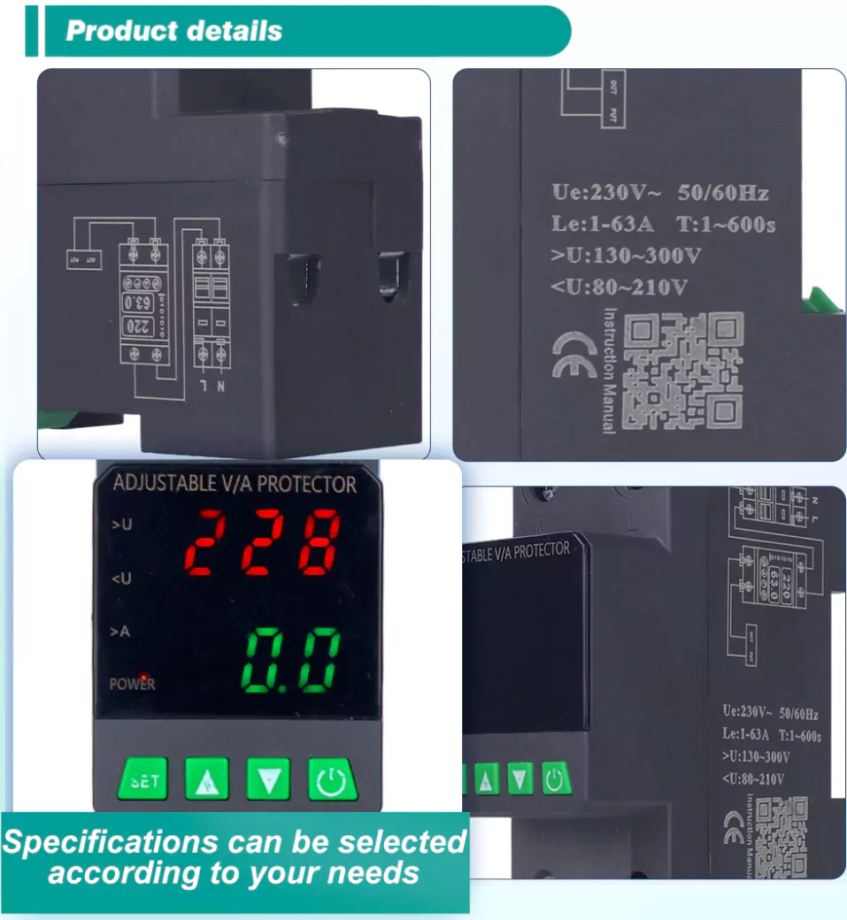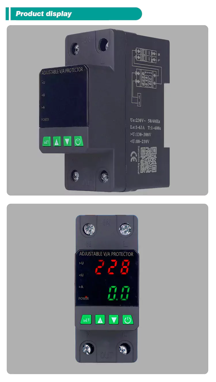 Udstyret med en digital skærm og fremstillet med importerede modulære elektroniske komponenter har den høj pålidelighed og ydeevne. Beskytteren afskærer automatisk og hurtigt strømforsyningen under unormale spændinger (såsom overspænding, underspænding eller gittersvingninger) og gendanner strømforsyningen, når spændingen vender tilbage til det normale.