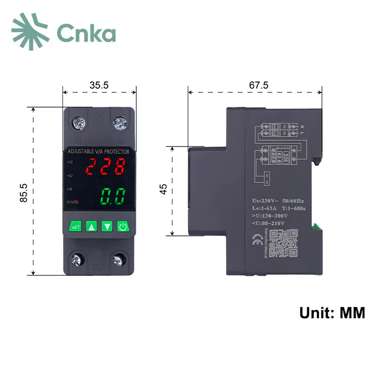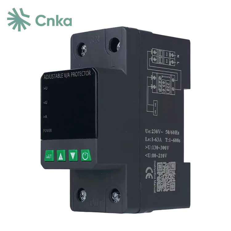 CNKA er en velkendt kinesisk leverandør, der giver engros af sit brands 2-polspændingsbeskyttelsesrelæ. Disse enheder er designet specifikt til enfaset AC 220V, 50Hz kredsløb med en nominel strøm på 63A, hvilket gør dem til et ideelt valg til beskyttelse af boligfordelingsbokse eller ledninger, der leverer strøm til enfaseudstyr.